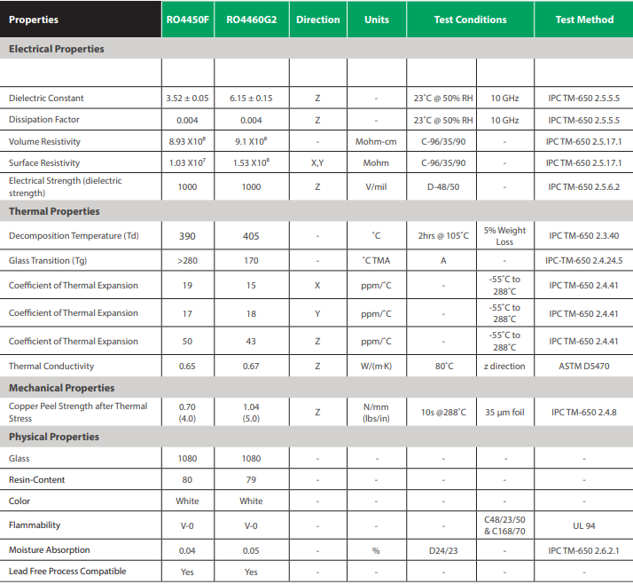 Fetures of RO4450F™ and RO4460G2™ PCB Material