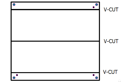 V-cut is generally suitable for PCBs with rectangular shapes. It is characterized by neat edges after separation and low processing cost. It is recommended to use it first, as shown in Figure 1-3;