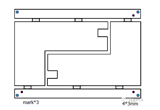 When the board is densely populated and the board edge space is limited, it is necessary to increase the process edge for the transfer edge of the PCB board during SMT, generally 3-5mm. On the process edge, generally one positioning hole is added to each of the four corners, and optical positioning points are added to the three corners to strengthen the positioning of the machine, as shown in Figure 1-6.