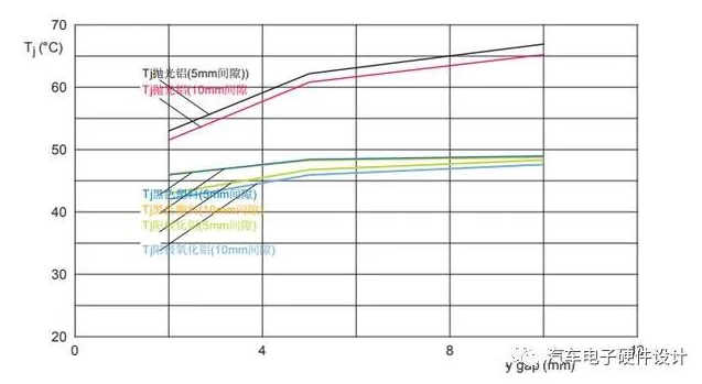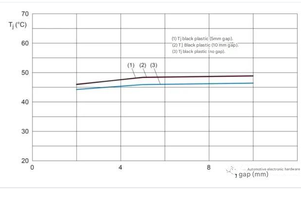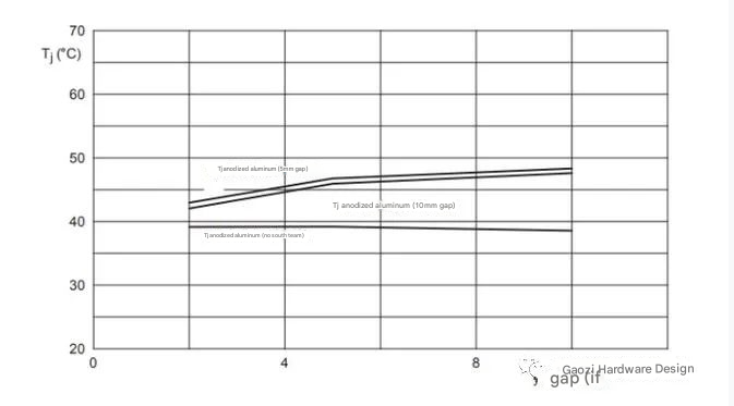 l For the black plastic housing, the air gap does not have a large effect on Tj, since plastic is a poor thermal conductor and the radiation exchange between the surfaces is good;