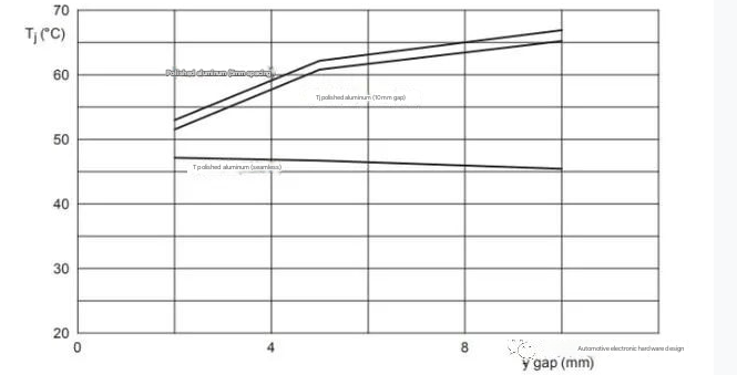 l For the polished aluminum housing with a larger y-gap, the effect is more significant, since aluminum is a good thermal conductor and the radiation exchange is poor;