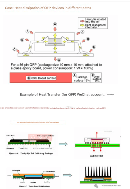 This type of device has a large number of pins/solder balls, and the package is also close to the single board after welding, establishing a close heat exchange relationship with the single board. The heat dissipation solution must be analyzed from the perspective of the overall heat dissipation of the single board. SMD devices have also appeared in a variety of enhanced heat dissipation packages for heat dissipation needs.