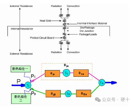 • These thermal resistance parameters can be obtained from experimental tests or calculated based on the detailed device’s internal structure. Based on these thermal resistance parameters and the device’s heat dissipation, the device’s junction temperature can be calculated.