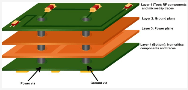 Place signal layers adjacent to solid reference planes. The closer the signal layer is to its reference plane, the smaller the loop area becomes. For critical signals: