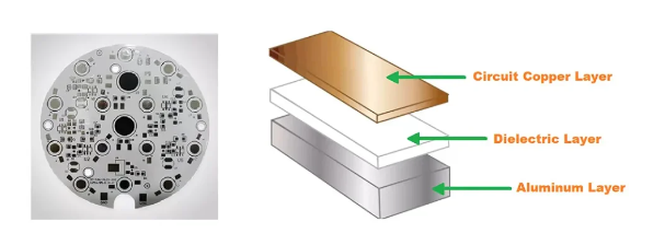 Aluminum-based PCBs, often called metal core PCBs (MCPCBs), feature a base layer made of aluminum alloy (typically 5052, 6061, or 1060 grades). This aluminum substrate serves as both the mechanical support and thermal conductor. The standard structure consists of: