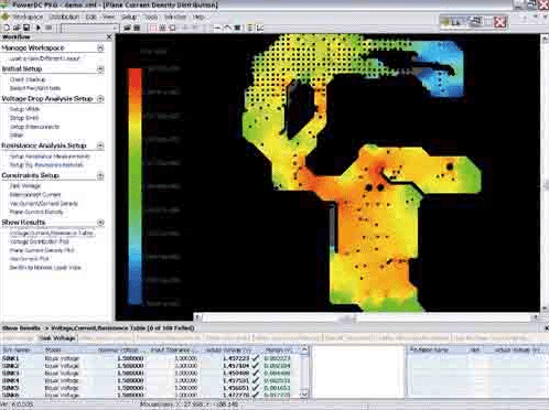 Figure 2: Sigrity PowerDC calculates the current distribution on the power board layer