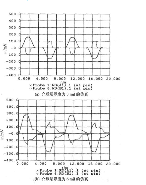 In the PCB stackup editor, the dielectric layer thickness is set to 3 mil and 6 mil respectively, and other settings remain unchanged. The simulation waveform is shown in Figure 9.