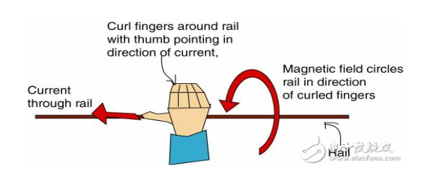 According to Maxwell’s equations, the charge in the moving trace can generate a current, which in turn generates a magnetic field. This magnetic field generated by the moving charge is called “magnetic lines of flux”. The direction of the magnetic flux lines can be easily pointed out using the “Right-Hand Rule”, as shown in Figure 4. The thumb of the right hand represents the direction of the current flow in the trace, and the other curled fingers surround the trace, representing the direction of the magnetic field or flux lines. In addition, the time-varying magnetic field will generate a perpendicular electric field. RF radiation is a combination of this magnetic field and electric field. Magnetic and electric fields leave the PCB structure by radiation or conduction.