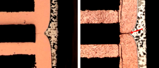 - Poor adhesion (peel strength <1 N/mm) leads to copper separation during thermal cycling
