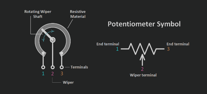 The potentiometer acts as a voltage divider when connected to a circuit: