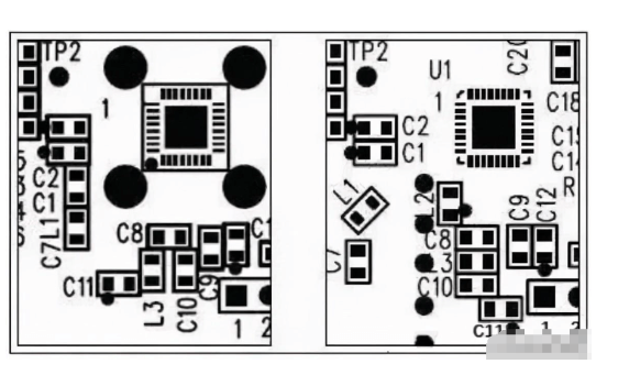 Figure 2 shows two different PCB layouts, one of which has unreasonable component arrangement direction (L1 and L3) and the other has a more appropriate arrangement direction.