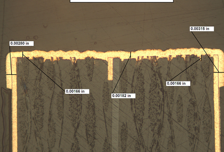 • Confirms solder mask thickness and coverage.