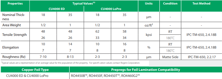 Rogers CU4000™ foil is intended for MLB designs using RO4000® cores and