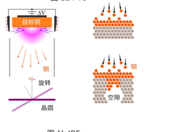 We can use physical vapor deposition (PVD) to deposit copper with high kinetic energy of 10 to 100 electron volts, resulting in a low-resistance, high-density single-crystal structure. However, the limitation of PVD is that it has poor coverage and can only be deposited uniformly on a flat surface, and cannot be used to fill deep holes or trenches (Figure 1a).