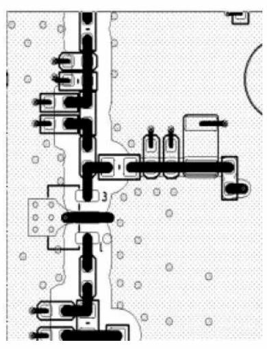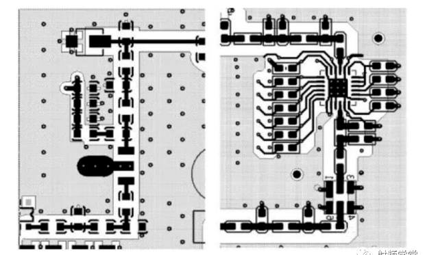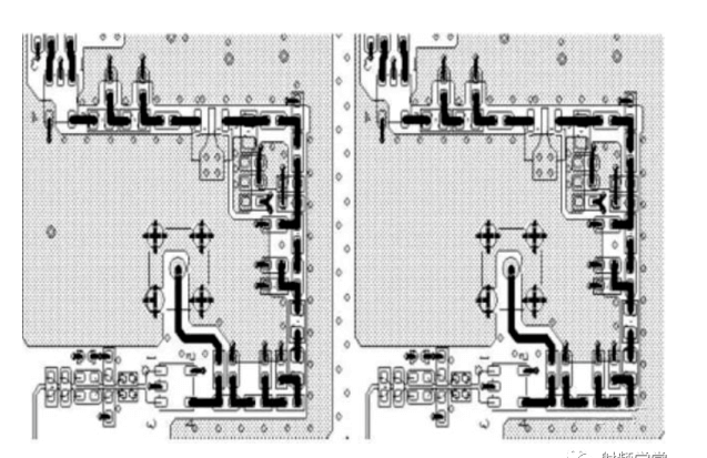 The RF circuit power supply should not be split into separate planes.A full power plane not noly increases RF signal radiation but also makes it susceptible to interference from RF signals.Therefore,power lines or planes are generally long and processed according to the current flow.Thicken as much as possible while meeting the current capacity,but do not wide meeting the current capacity,but do not widen it indefinitely.When handing power lines,be sure to avoid loops.