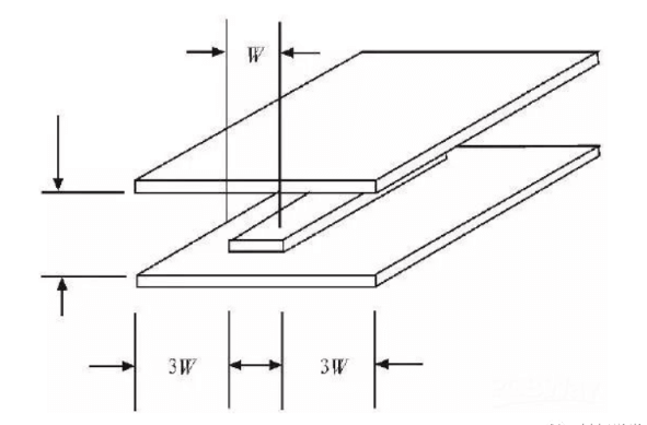 RF traces must be at least 3W away from the edge of the adjacent ground layer,and no nonground vias should be within this 3W range.