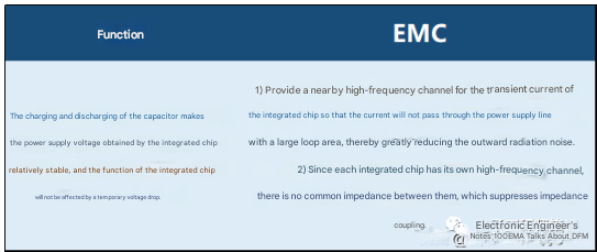 There are two reasons for local decoupling: 1 is because of the function, 2 is because of the EMC aspect, as shown below: