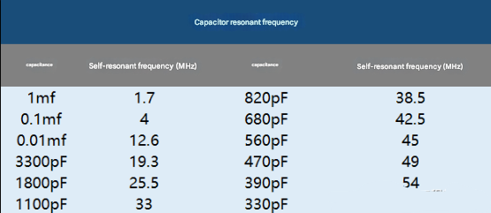 Some people think that the larger the capacitance, the better the filtering effect. This is a misunderstanding. Although the larger the capacitance, the better the bypass effect of low-frequency interference, the impedance begins to increase with the increase of frequency due to the low resonance frequency of the capacitor, and the bypass effect of high-frequency noise becomes worse. The self-resonant frequency of ceramic capacitors with different capacitances is given in the table, and the lead length of the capacitor is 1.6mm.