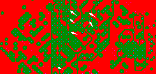 When designing the power layer and ground layer division in the inner layer, the bottleneck of network conduction will appear due to the dense vias. The copper bridge width of the power network conduction is not enough, which will cause the matching current to not pass, resulting in board burning. Some bottleneck positions are even directly open, resulting in product design failure.