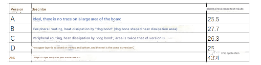 Under the premise of the same vias, 5 boards of the same size are compared, ABCD is a 4-layer board, and the comparison results are shown in the figure above.