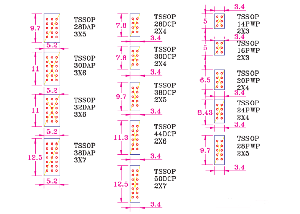 Temperature is one of the key factors that limit device power and performance. Any power chip application engineer must pay attention to the problem of thermal resistance when designing. When θJC is relatively low, the reduction of θJA is particularly important, and the thermal resistance θJA is highly dependent on the design of the PCB. The following takes TSSOP28 as an example and explores the impact of several factors on heat dissipation through several experiments. The figure below A is an ideal board with almost few traces, B is the peripheral traces, relying on the middle heat dissipation pad and upper and lower heat dissipation, and C is to expand the heat dissipation area.