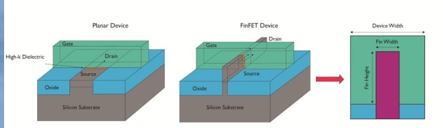 By increasing the current-carrying channel, the gate can be surrounded on three sides, allowing the gate to exhibit stronger electrostatic control. This overcomes short channel effects that lead to excessive leakage current and other problems caused by nanometer planar transistors made using large amounts of silicon.
