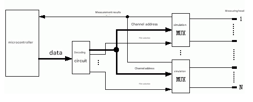 In order to enable the detection circuit to select different pins for measurement in sequence from the many measuring heads of the component pins that have been connected according to the combination principle, a corresponding switch array can be set, and different switches can be opened/closed by the program to switch the component pins into the measurement path to obtain their on/off relationship. Since the measured value is an analog voltage quantity, an analog multi-way switch should be used to form a switch array. Figure 1 shows the idea of using an analog switch array to realize the switching of the measured pins.