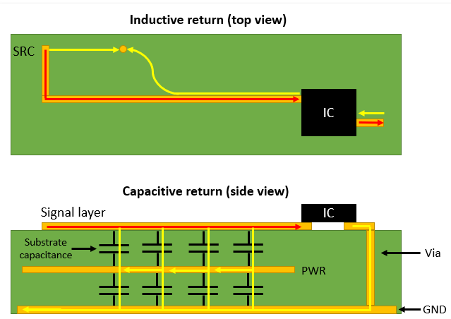 A complete circuit requires both outgoing and return current paths. In PCB design, understanding return current flow is crucial, especially for: