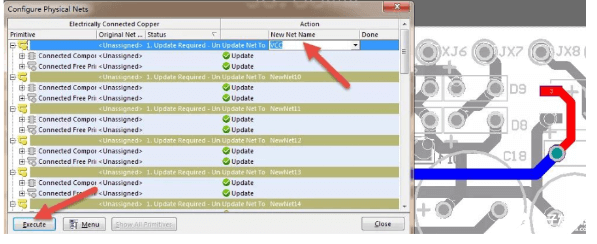 2) In the “New Net Name” column, you can click to change the name of a network, such as “VCC”, etc. This interface is similar to several network managers. If you don’t want to update, the system will automatically generate a serial number network.
