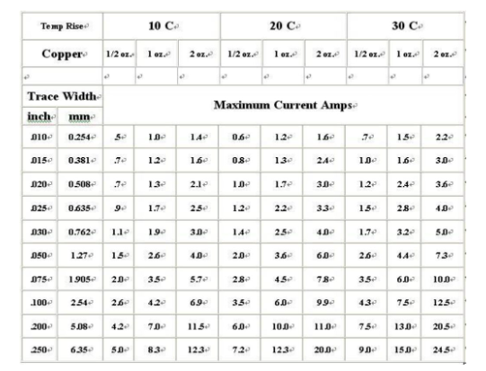 Finally, it is explained again: the current carrying value data table is only an absolute reference value. When there is no high current design, the data provided in the table can be increased by 10% to meet the design requirements. In general single-panel design, with a copper thickness of 35um, it can basically be designed at a ratio of 1 to 1, that is, a current of 1A can be designed with a 1mm wire, which can meet the requirements (calculated at a temperature of 105 degrees).