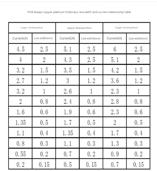 4.the relationship between copper platinum thickness, line width and current in PCB design