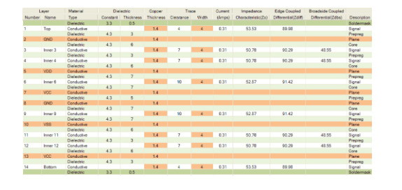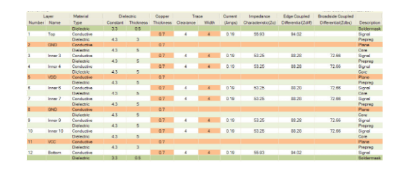 When properly stacked and routed,they can meet all of our high-speed requirements and will have excellent EMC performance and signal integrity.The twelve-layer stackup described above provide shilding on the six inner layers