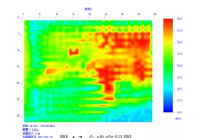 When performing the spectrum/space scanning function, place the working PCB on the scanner. The PCB is divided into 7.6mm×7.6mm grids by the scanner grid (each grid contains an H-field probe). After performing a full-band scan of each probe (the frequency range can be from 10kHz to 3GHz), Emscan finally gives two pictures, namely the synthetic spectrum map (Figure 1) and the synthetic space map (Figure 2).