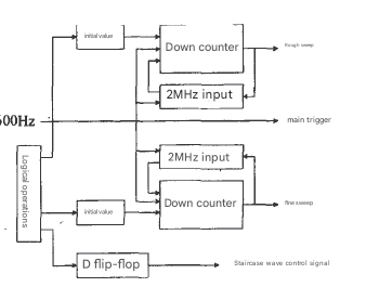 As shown in Figure 1, when the 1600Hz frequency arrives, the input clock (2MHz) of the fine scanning counter and the coarse scanning counter will be turned on, and the initial loading process of the two will be started. Then, the input pulse will be subtracted with this initial value. When the subtraction overflows, the output end will generate the required scanning signal.