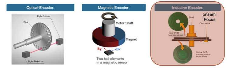 Figure 1: The main methods for rotary position sensing include optical, magnetic, and inductive technologies