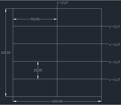 The figure below demonstrates the PCB panel design file completed by the design software. As a 5×2 panel, each square unit is a single board with a size of 50mm20mm. The connection between each unit is achieved by V-cut/V-scoring technology. In this image, the final size of the panel displayed by the entire square is 100mm100mm. According to the above panel size requirements, it can be concluded that the panel size is within the acceptable range.