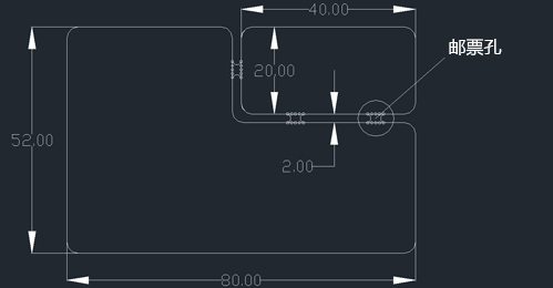 The figure below shows an irregularly shaped PCB with a processing edge added by Huaqiu DFM software. The entire circuit board size is 80mm52mm, and the square area is the size of the actual PCB. The size of the upper right corner area is 40mm20mm, which is the auxiliary process edge generated by the posthole bridge.