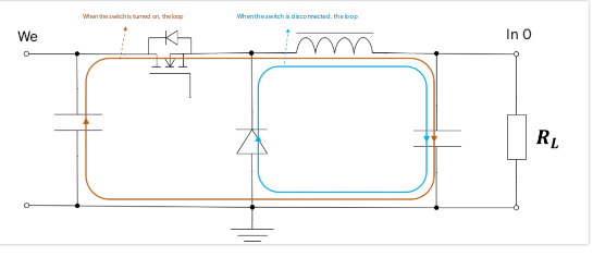 Take BUCK as an example. The BUCK circuit has two states, the upper tube is turned on and the lower tube (or diode) is turned on, so there are two large current loops.