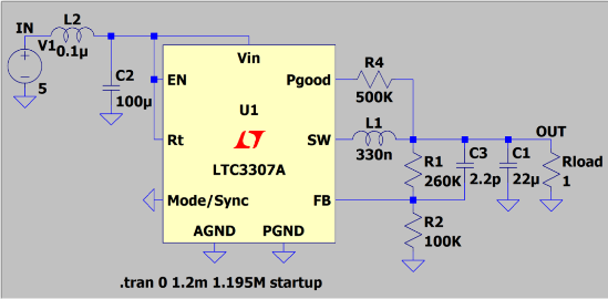 Using LTspice software simulation, the 5V to 1.8V buck circuit diagram is as follows: