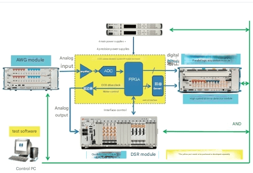In the test, a high-performance AWG arbitrary waveform generation module is used to simulate the video analog signal output by the CCD, which is output in high-speed digital form after being collected and processed by the module under test. If it is parallel data capture, high-speed parallel data can be captured and analyzed with a high-speed logic analyzer module; if it is multi-channel high-speed serial data, the input end of the parallel bit error meter can be used for clock recovery and data capture. The test requires that the AWG module’s signal-to-noise ratio, dynamic range, bandwidth and other indicators can meet the system’s signal-to-noise ratio test requirements, can flexibly add interference factors such as noise, and have deep enough memory to generate the signal of the entire video frame. The logic analyzer should have a high enough state sampling rate and memory depth, and the bit error tester should have multi-channel serial data input capabilities, clock recovery capabilities, high-speed signal equalization capabilities and sufficient memory depth.