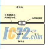 If the system has only one A/D converter, the above problem is easy to solve. As shown in Figure 3, split the ground and connect the analog ground and digital ground parts together under the A/D converter. When taking this method, it is necessary to ensure that the width of the connection bridge between the two grounds is the same as the width of the IC, and no signal line can cross the split gap.