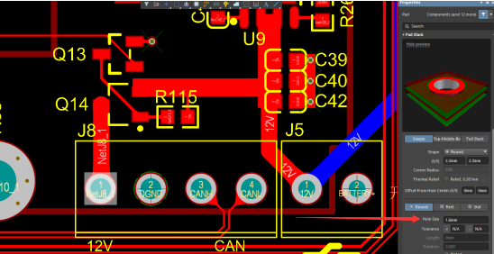See the figure below. The device pin of WJ124-3.81-4P_WJ124-3.81-4P (KANGNEX) is 1.3mm, and the PCB package hole is 1.6mm. The large hole diameter leads to empty soldering during wave soldering.