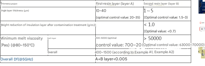 Since the first and second resin layers (layer A and layer B) have different focuses on “functional contribution”, that is, there is a certain “division of labor”, they also have different performance index control. Detailed information about this difference is disclosed in the Japanese patent on the development of a two-layer resin film (for high-frequency circuits and multi-layer PCBs using the SAP method to form a conductive layer). The relevant content is sorted and listed in the following table for reference and example.