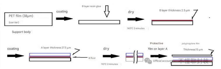 The production of resin film products with support bodies is usually carried out on a high-precision coating machine. First, the liquid resin is evenly coated on the surface of the carrier, and then a resin composition layer is formed by drying. Next, after cutting and winding, a semi-cured resin film is obtained.
