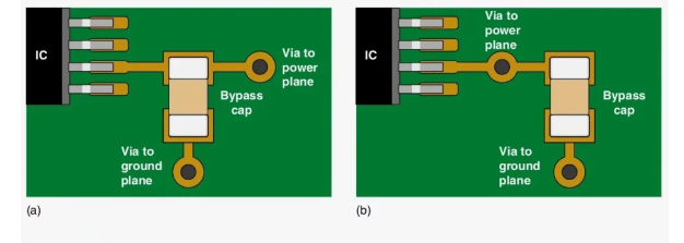 - Long traces introduce parasitic inductance, reducing capacitor effectiveness.