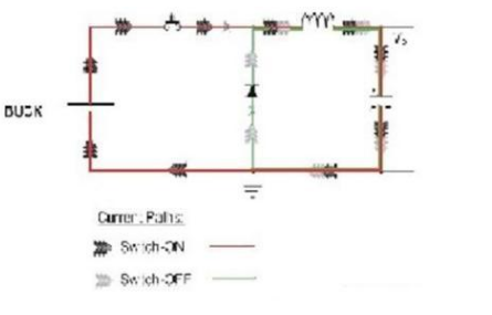 Refer to the current path in Figure 1: the path through which the FET flows when it is on is marked in red; the loop through which the FET flows when it is off is marked in green. We observe two different situations: the area with two colors and the area with only one color. We must pay special attention to the latter case because the current alternates between zero and full-scale voltage. These are all high di/dt areas.