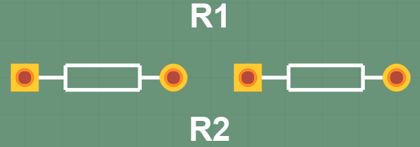 Placing componet next to each other without reference deisgnators clearly indicating which component goes on which pad can lead to a number of problems,including the wrong components being placed in an unintended manner,introducing shorts or opens.The author has seen layout with this error,as shown in the image below.Some pcb made using this layout assembled correctly with horizontally placed resistors.Other PCBs had resistors placed incorrectly vertically.This component misalignment caused the PCB to not function.Using package with outlines around the components is one way to avoid this problem.