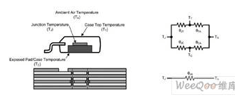 The thermal impedance (θJC) from the semiconductor junction to the external package of these devices is 1.9℃/W. While achieving industry-leading θJC values is desirable, low θJC values are meaningless when the thermal impedance from package to air (θCA) is too great! If a low impedance heatsink path to the surrounding air is not provided, the heat will be trapped at the exposed pad and unable to dissipate. So what determines the θCA value? The thermal resistance from the exposed pad to air is completely controlled by the PCB design and the associated heat sink.