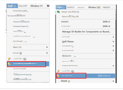 (1) In order to achieve interaction between schematics and PCB, it is necessary to execute the menu command “Tools-Cross Selection Mode” in both the schematic editing interface and the PCB design interaction interface to activate the cross selection mode, as shown in Figure 3.