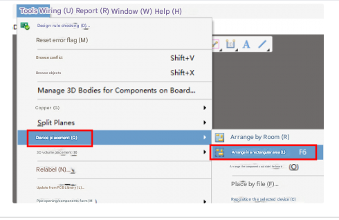 (2) Execute the menu command “Tools-Device Placement-Arrange in Rectangular Area”.